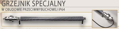 Elektryczny ogrzewacz przeciwwybuchowy w osłonie ognio- i pyłoszczelnej jest przeznaczony do pracy w pomieszczeniach i przestrzeniach innych niż kopalnie metanowe, zagrożonych wybuchem mieszanin gazów i par palnych z powietrzem o temperaturze samozapłonu powyżej 200°C.